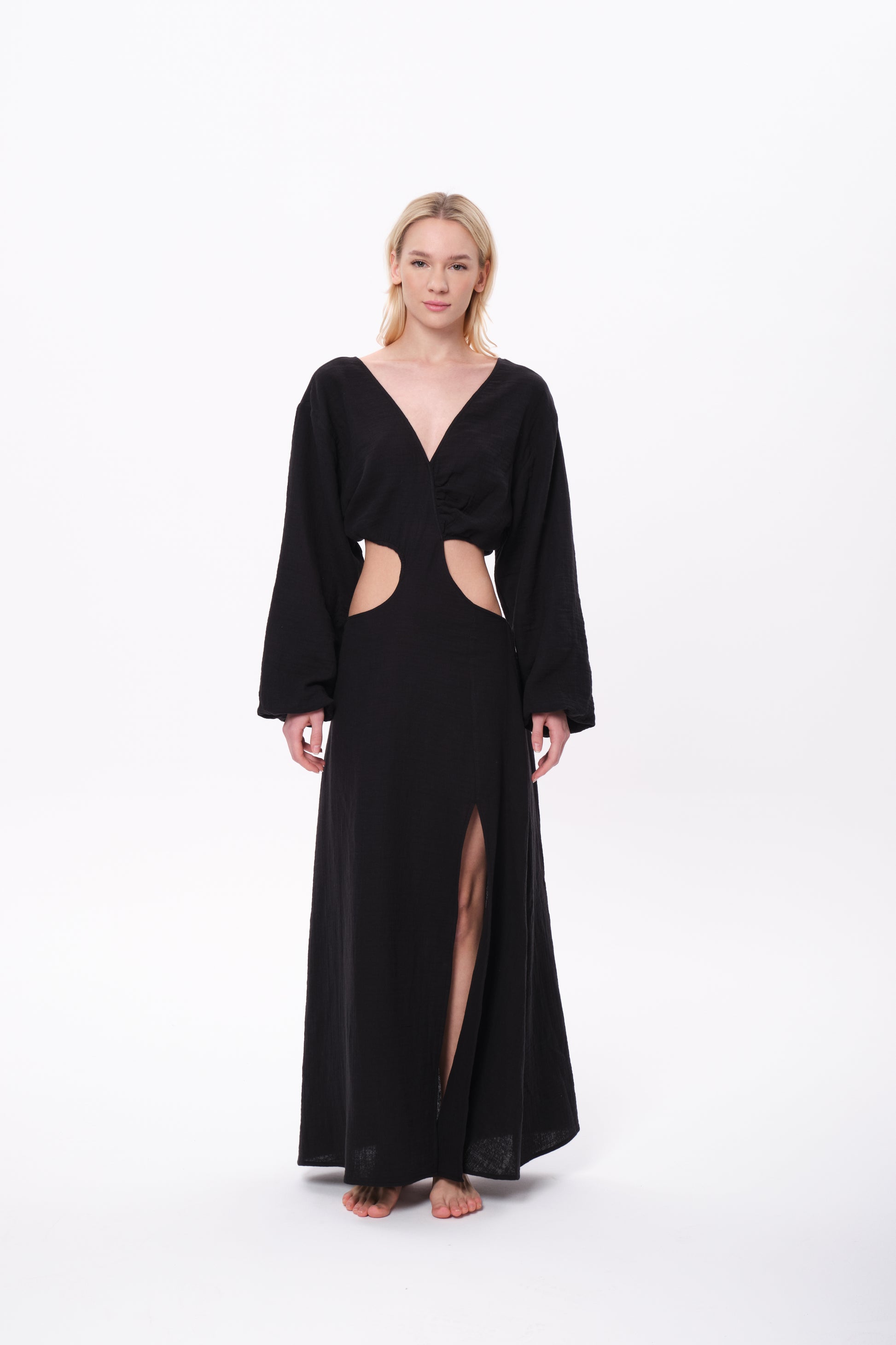 Doğal müslin dokusunun hafifliği ile zarif bir silueti bir araya getiren Aija Dress, hem gündüz hem akşam stiline eşlik eden zamansız bir parça.